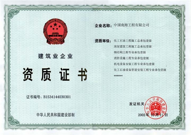消防设施工程专业承包壹级